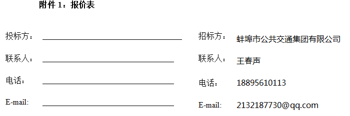 報名方式:現場報名,投標方請在規定時間內前往蚌埠公交集團高新區修理廠二樓物供公司經理辦公室報名和領取招標文件(自帶U盤)