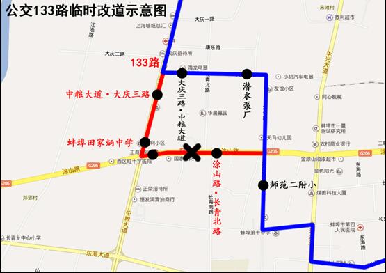 因中糧大道與涂山路交匯路口封閉施工,自3月30日起,公交133線路來回雙向改道為:大慶路橋首末站—大慶路—大慶三路—友誼路—原線路—客運(yùn)南站。